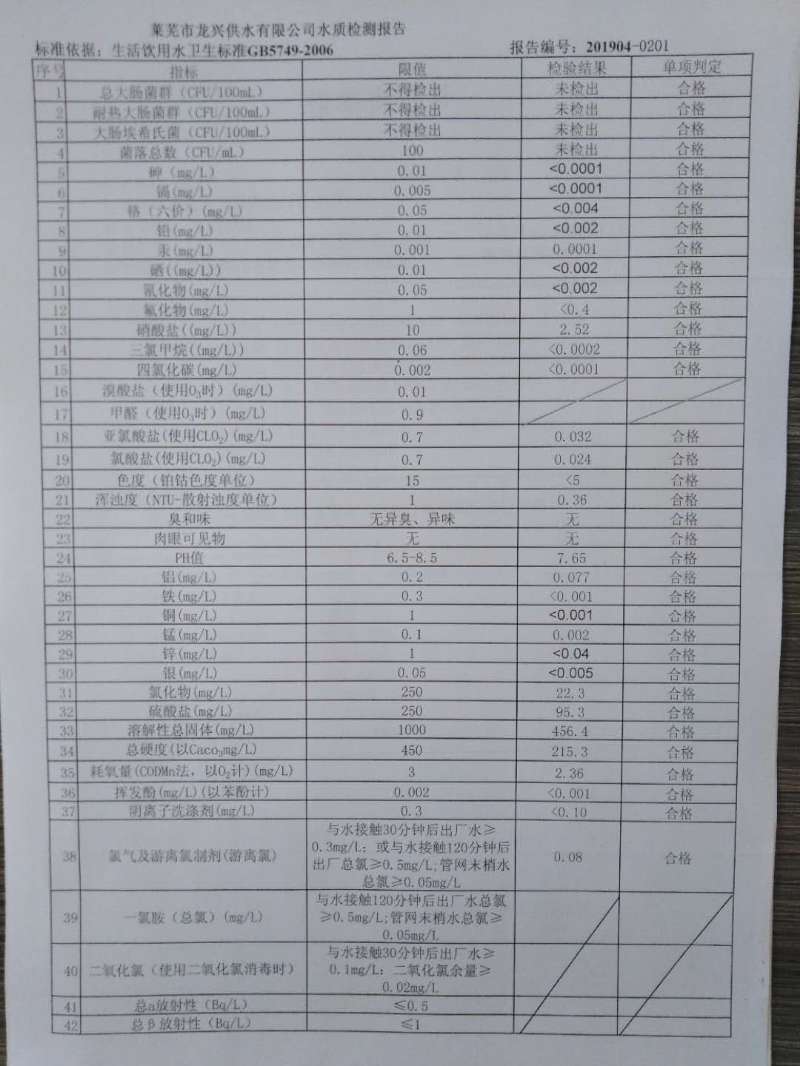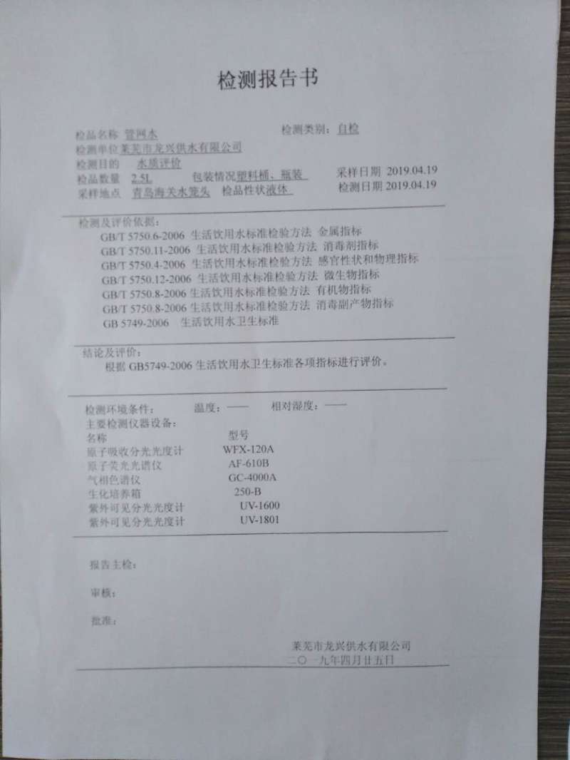 青島海關(guān)管網(wǎng)水龍頭水質(zhì)檢測報(bào)告