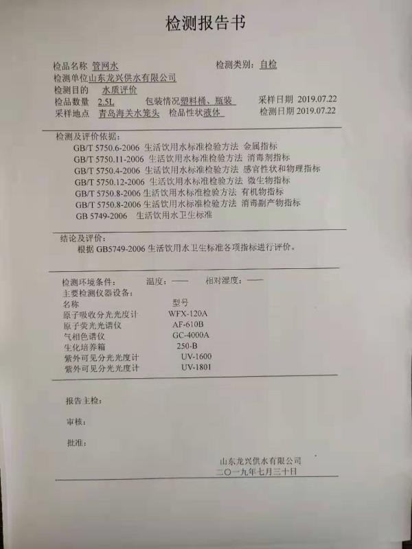 青島海關(guān)管網(wǎng)水龍頭水質(zhì)檢測報告