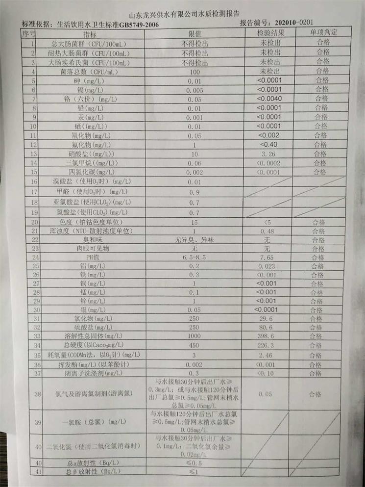 2020年10月管網(wǎng)水月檢報告