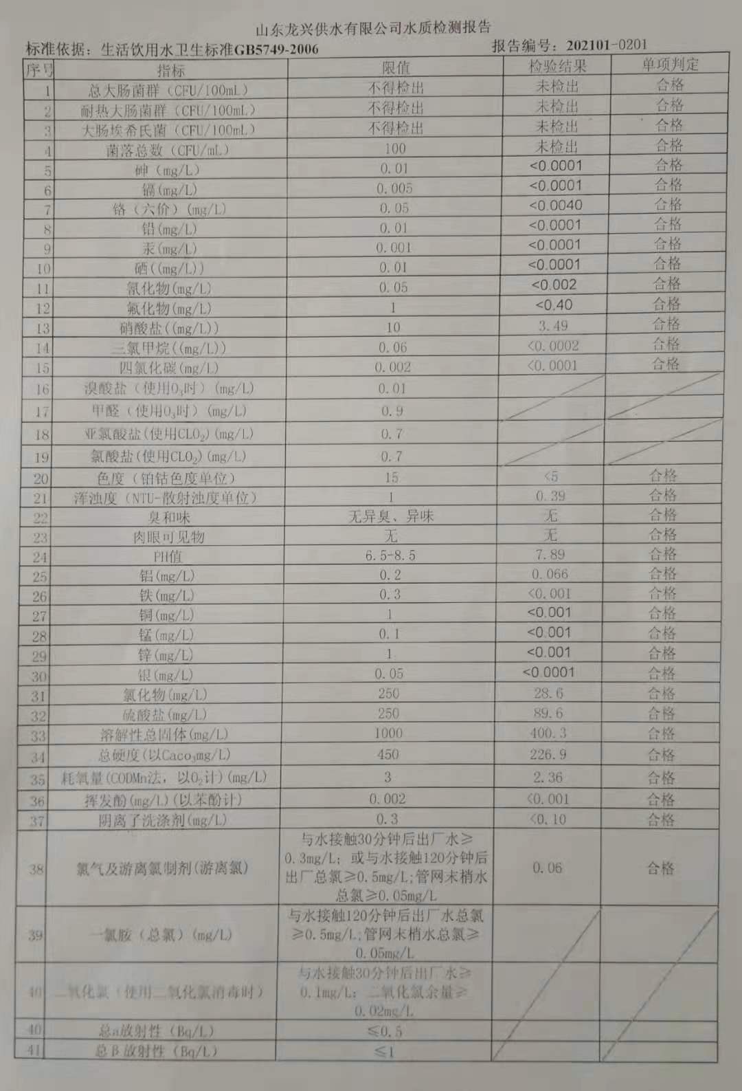 元月份管網(wǎng)水(億利潔能有限公司水龍頭)月檢報(bào)告