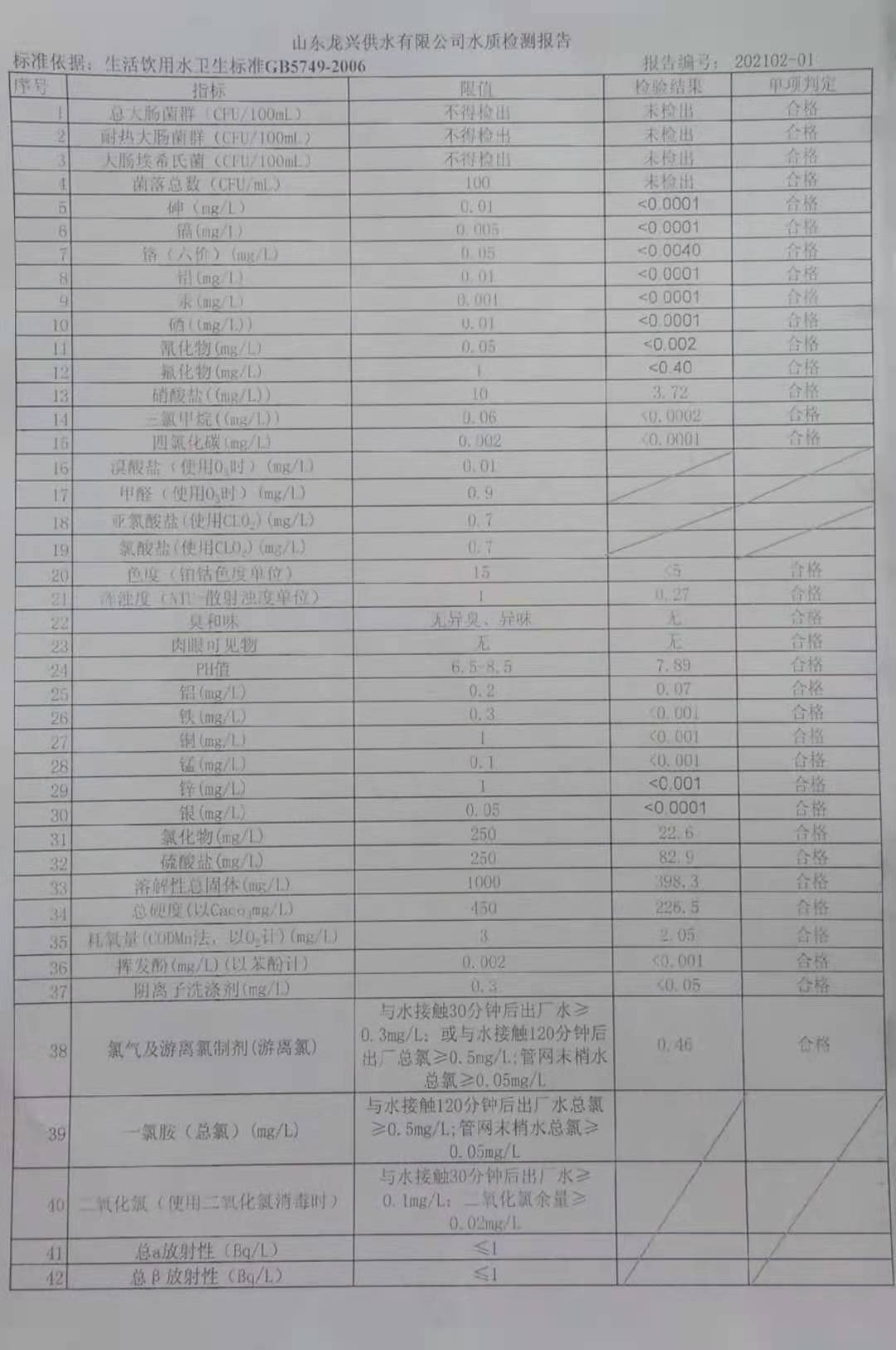 2月份出廠水月檢報告
